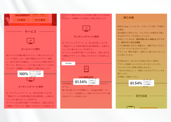 ユーザーがスクロールする手を止めて熟読しているポイントが赤くなります。